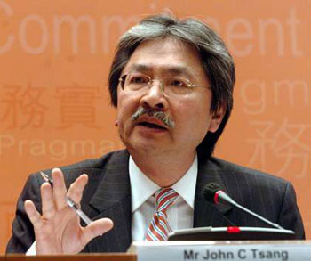 中新網(wǎng)3月19日電 據(jù)香港大公報(bào)報(bào)道,香港財(cái)政司司長曾俊華18日晚出席香港專業(yè)及資深行政人員協(xié)會的晚宴,向該會成員解釋他的公共理財(cái)策略,以及討論對年度財(cái)政預(yù)算案的看法。他表示,展望2008年,對香港經(jīng)濟(jì)感到審慎樂觀,幸好香港背靠祖國,得以舒緩?fù)鈦韷毫Α?/p>