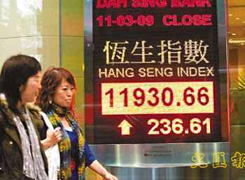 中新網(wǎng)3月12日電 據(jù)香港《文匯報(bào)》報(bào)道,港股11日承接隔夜美股升勢,在匯控高開12%帶動下,令大市裂口高開500多點(diǎn),帶動大市沖上12000點(diǎn),但“大象”后勁不繼,輾轉(zhuǎn)回落至僅收升2.26%,報(bào)38.45元,逐令大市12000點(diǎn)關(guān)不保,收市僅上升236.61點(diǎn)至11930.66點(diǎn),升幅僅2.02%。
