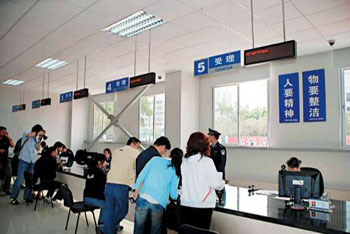 四月一日,深圳居民擴(kuò)大個(gè)人游香港試點(diǎn)啟動(dòng),同時(shí)該市公安局出入境辦證大廳啟用。 中國(guó)公安部決定,自2009年4月1日開(kāi)始實(shí)施為深圳戶(hù)籍居民辦理一年多次往返香港個(gè)人旅游簽注,新政策將惠及除國(guó)家登機(jī)備案工作人員之外的二百二十多萬(wàn)居民。 中新社發(fā) 陳文 攝