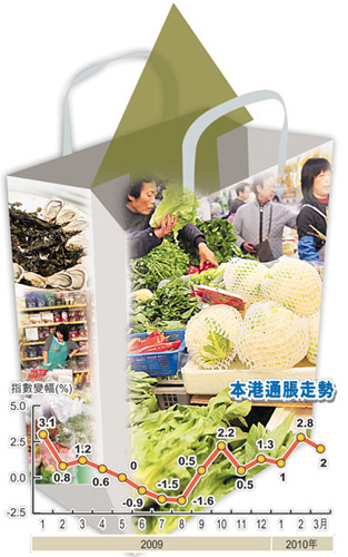 中新網(wǎng)4月23日電 據(jù)香港文匯報(bào)報(bào)道,香港經(jīng)濟(jì)尚未全面復(fù)蘇,通脹壓力已逐步升級(jí)。特區(qū)政府統(tǒng)計(jì)處昨公布,上月綜合消費(fèi)物價(jià)指數(shù)按年上升2%,剔除港府一次性紓困措施后,基本通脹率達(dá)0.8%,當(dāng)中電力、燃?xì)饧八畲,按年急?3.7%,整體食品價(jià)格升1.3%。
