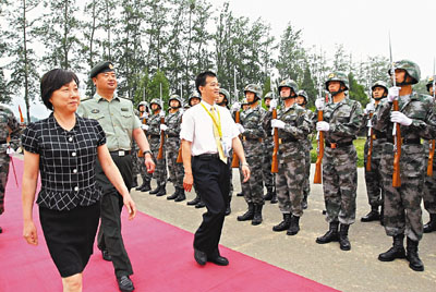 學(xué)員早上乘車到解放軍北京衛(wèi)戍區(qū)的軍營(yíng)參觀,文匯報(bào)副社長(zhǎng)兼未來之星同學(xué)會(huì)主席韓力在北京衛(wèi)戍區(qū)警衛(wèi)三師副師長(zhǎng)朱繼明陪同下檢閱軍隊(duì),之后兩人與北京衛(wèi)戍區(qū)警衛(wèi)三師副參謀長(zhǎng)閆慶峰、北京衛(wèi)戍區(qū)警衛(wèi)三師十一團(tuán)團(tuán)長(zhǎng)李永奎、北京衛(wèi)戍區(qū)外事處處長(zhǎng)王普升等及一眾同學(xué)欣賞軍事表演。