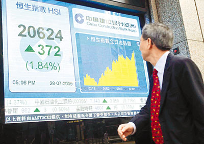 中新網7月29日電 據香港《文匯報》報道,港股連續(xù)第4天上升,恒指28日早段表現(xiàn)反復,一度回吐142點,午后在中移動等續(xù)炒A股回歸概念股,以及地產股帶動下,才展現(xiàn)升幅,恒指曾經高見20664點,升逾410點。最終全日報20624.5點,升372.9點,升幅1.8%,再創(chuàng)“雷曼爆煲”后新高,成交額增至852.5億元。