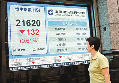 中新網(wǎng)11月3日電 據(jù)香港《文匯報(bào)》報(bào)道,恒指2日經(jīng)過(guò)上周結(jié)算后,并未結(jié)束波動(dòng)的情況。早段在美股上周五大跌250點(diǎn)的陰霾下,恒指急跌622點(diǎn),正當(dāng)大家以為港股會(huì)向下尋底后,令人意想不到的情況再次發(fā)生,午后在A股大升下,帶動(dòng)恒指跌幅大為收窄,恒指全日收?qǐng)?bào)21620點(diǎn),只跌132點(diǎn),成交額654億元。