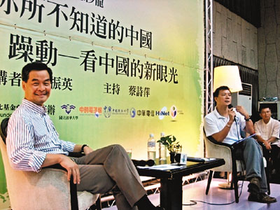 “思沙龍”以《你所不知道的中國》為題,參加人數(shù)超過300人,據(jù)說還有不少人不得其門而入。梁振英在演講中不忘“銷港”,談到過去30年,香港也參與在內(nèi)地的改革開放之中,香港與內(nèi)地的互動發(fā)展不僅在經(jīng)濟方面,而在文化、生活方式、語言、以至觀念等各方面都已經(jīng)發(fā)展到“你中有我,我中有你”的相互影響的狀況。