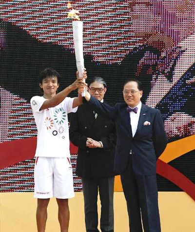 主持起步儀式的曾蔭權(quán)致辭時表示,火炬接力儀式為東亞運(yùn)揭開序幕之余,亦是慶祝新中國建國六十周年,具有雙重意義。他說,火炬象征崇高的體育精神,火炬接力將堅毅不屈的信念傳遞出去。曾蔭權(quán)希望港人特別是年輕人,盡情投入此項盛事,以促進(jìn)香港與東亞地區(qū)之間的體育和文化交流。他寄語市民把握機(jī)會,一盡地主之誼,向游客展示好客之道。