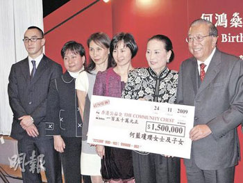 四太大女何超盈手持寫上“Happy Birthday 掂呀!”的巨型生日卡賀老父,四太則用手做出心形手勢表示送個(gè)心給賭王。二太藍(lán)瓊纓則率領(lǐng)三女一子何超瓊、何超鳳、何超蕸及何猷龍出席“賀禮捐公益”活動(dòng),代表賭王將一張150萬元的支票捐贈(zèng)公益金,并透露賭王進(jìn)展良好,但仍未可出院,要在醫(yī)院度生辰。