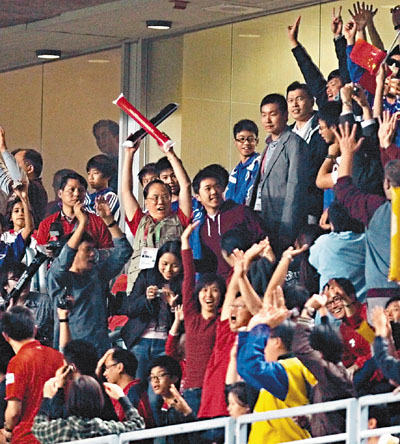 而當(dāng)香港隊(duì)在互射12碼擊敗日本摘金后,曾蔭權(quán)更興奮得跳了起來,與特首辦主任譚志源擁抱慶祝。其瘋狂投入肉緊的程度,遠(yuǎn)勝一般球迷。