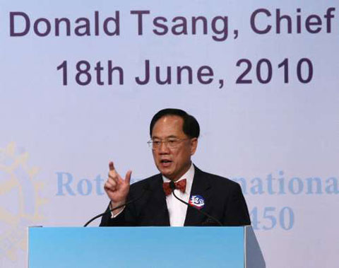 曾蔭權(quán)指出,現(xiàn)在政改問題已到了關(guān)鍵時刻,很有可能會“無功而還”;香港政制能否向前邁進(jìn),在于議員的“一念之間”。