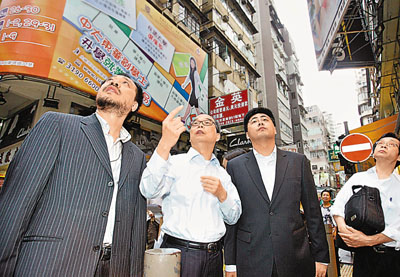 六月九日,腐蝕性液體傷人事件發(fā)生后,香港警方繼續(xù)對旺角奶路臣街與西洋菜南街交界處的幾棟嫌疑樓房進(jìn)行布控,進(jìn)一步排查疑點(diǎn),大批香港媒體亦在現(xiàn)場跟蹤報道。 中新社發(fā) 鄭祚聲 攝