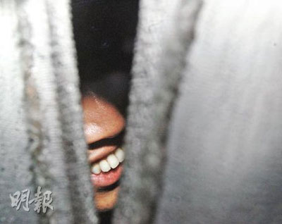 此時,探員在陳宅內(nèi)調(diào)查已近3小時,6時40分,陳振聰被捕帶返警署。一輛沖鋒車率先駛出大閘開路,尾隨一輛深藍(lán)色警方客貨車,只見車身兩邊與后車窗俱掛上布簾,傳媒包圍爭攝車內(nèi)情況,黑暗的車廂內(nèi)乍現(xiàn)一排潔白的牙齒,正是陳振聰?shù)恼信啤八娜f”笑容。