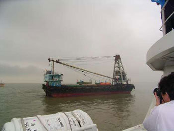正在珠海對面海域進(jìn)行港珠澳大橋初步設(shè)計(jì)勘察的船舶已增至30多艘,現(xiàn)場三個(gè)實(shí)驗(yàn)室陸續(xù)啟用。(圖片來源:大公報(bào))