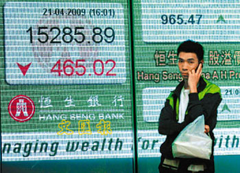 中新網(wǎng)4月22日電 據(jù)香港《文匯報》報道,美股大跌近300點(diǎn),令港股21日裂口低開685點(diǎn),是近期少見的大調(diào)整,匯控等一眾金融股成為跌市火車頭。下午港股跌幅收窄,全日收報15285點(diǎn),跌465點(diǎn),跌幅3%,為兩周來最大跌幅,成交縮至576.8億。