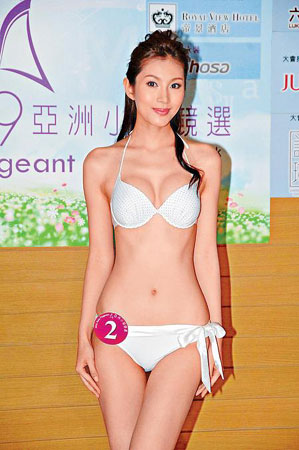 來自臺灣的劉伊心,因大熱門缺席,而被傳媒發(fā)現(xiàn)她原來身材很好,不過她說自己仍需瘦身,“想瘦多一點(diǎn),愈瘦愈好,腰瘦一點(diǎn),會美一點(diǎn)。(你腰圍多少?)近日沒有量度,之前是24至25吋!