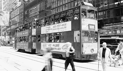 如果把巴士比作高大氣派、行動(dòng)敏捷的年輕人,電車(chē)就是一位衣著寒酸、步履蹣跚的老者。港府為何要保留這個(gè)老古董呢?答案是:一、充滿懷舊色彩的“叮當(dāng)車(chē)”已經(jīng)成為香港一景,是香港特色的一部分。二、車(chē)費(fèi)相對(duì)便宜,是低收入階層的至愛(ài)。三就是出于環(huán)保的考慮了。
