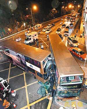 據(jù)香港文匯報(bào)報(bào)道,其中一部肇事雙層巴士為行走九龍城碼頭至火炭(山尾街)的85號(hào)線巴士;另一部九巴為行走沙田駿景園巴士總站至大圍顯徑的88K,當(dāng)時(shí)空車往顯徑,33歲姓吳車長(zhǎng)涉危險(xiǎn)駕駛被捕。