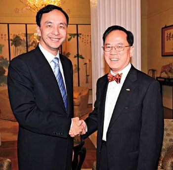 朱立倫是在香港訪問(wèn)期間與曾蔭權(quán)作禮節(jié)性會(huì)晤。