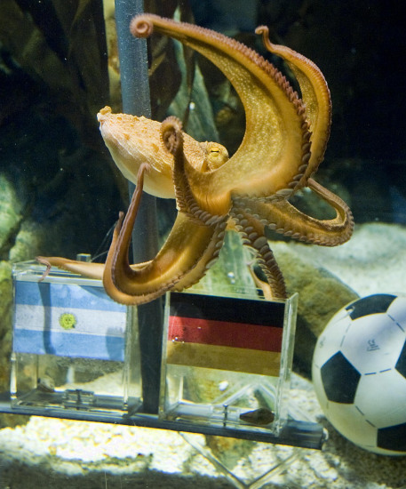 保羅已經(jīng)成為傳奇動(dòng)物,他準(zhǔn)確預(yù)測(cè)了四場(chǎng)比賽。在小組賽德國(guó)對(duì)澳大利亞、加納的比賽中,保羅都選擇了德國(guó),結(jié)果德國(guó)都勝了。而德國(guó)對(duì)塞爾維亞的比賽,保羅選擇了塞爾維亞,德國(guó)隊(duì)0:1負(fù)于塞爾維亞。在德國(guó)對(duì)陣英格蘭賽前,保羅只花了8秒鐘迅速選擇德國(guó),結(jié)果德國(guó)4:1大勝英格蘭。四分之一決賽,德國(guó)隊(duì)將遭遇阿根廷隊(duì),而保羅也是掙扎了一個(gè)小時(shí)才爬向德國(guó)。預(yù)示著德阿比賽必是一場(chǎng)漫長(zhǎng)的激戰(zhàn),但德國(guó)應(yīng)該能安全勝出。