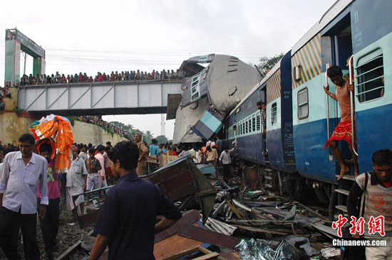 兩個月前,一列由東部西孟加拉國邦首府西加爾各答開往西部大城市孟買的快速客運火車,駛至加爾各答以西約150公里的一條小鎮(zhèn)時,13節(jié)車廂突然出軌,一列貨運火車迎面駛至,把客車其中4節(jié)車廂撞至嚴(yán)重變形扭曲,造成145人死亡。