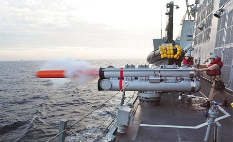 戰(zhàn)術(shù)型戰(zhàn)斧巡航導(dǎo)彈的最大射程超過(guò)1800公里。核動(dòng)力潛艇“圖森”號(hào)長(zhǎng)110米、乘務(wù)員110人、滿載排水量為7000噸,可潛入500米以下。