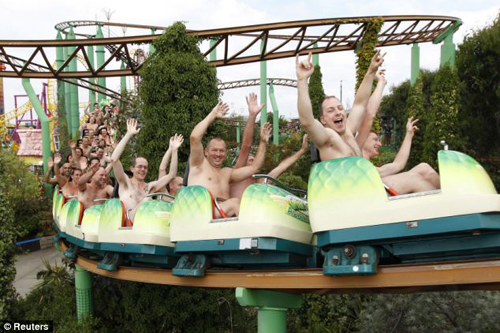 中新網(wǎng)8月9日電 據(jù)英國媒體報(bào)道,當(dāng)?shù)貢r(shí)間8月8日,102名英國男女齊聚艾塞克斯郡冒險(xiǎn)島游樂園,將衣服全部脫掉,體驗(yàn)裸體乘坐“綠色尖叫”過山車的刺激感覺。這102人也創(chuàng)造了一項(xiàng)新的世界紀(jì)錄。