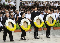 中新網(wǎng)8月9日電 據(jù)日本共同社網(wǎng)站報道,8月9日,日本長崎市迎來了原子彈爆炸65周年紀念日,原子彈爆炸遇難者慰靈和平祈愿儀式在長崎市松山町和平公園內(nèi)舉行。英、法兩個核持有國首次出席該紀念活動。除日本首相菅直人到場之外,包括俄羅斯、巴基斯坦及以色列在內(nèi)的32個國家均派代表列席,人數(shù)之多創(chuàng)歷史紀錄。當?shù)貢r間當天中午11點02分,全場在65年前原子彈投下的時刻集體默哀,為死難者祈福。