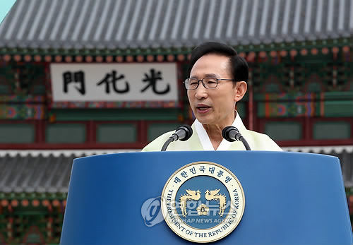 在通過電視現(xiàn)場直播的韓國國慶日紀(jì)念活動(dòng)中,李明博表示,朝鮮半島遲早會(huì)實(shí)現(xiàn)統(tǒng)一,目前我們已到了該準(zhǔn)備制定統(tǒng)一稅款等實(shí)質(zhì)性方案的地步。因此,在此提議各界廣泛討論此一問題。