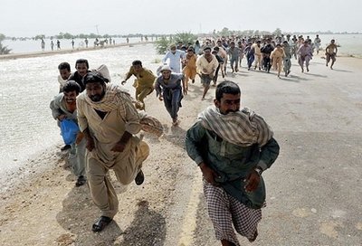 在巴基斯坦南部信德省的一座城鎮(zhèn)薩塔,30多萬居民中的70%因為印度河潰堤而被迫逃亡。