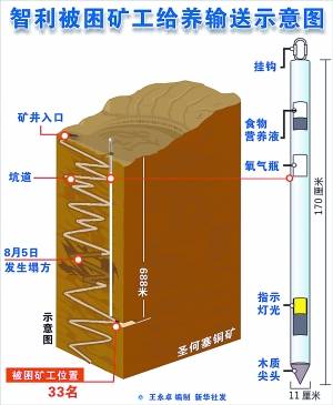 智利圣何塞銅礦本月5日發(fā)生塌方,救援人員22日發(fā)現(xiàn)33名被困礦工的位置,在此之前他們依靠少量食物頑強(qiáng)堅(jiān)持了17天。智利政府目前正全力展開(kāi)救援工作,然而,技術(shù)上的困難導(dǎo)致可能要花4個(gè)月時(shí)間才能救出全部礦工。當(dāng)局絞盡腦汁激勵(lì)他們的求生意志,運(yùn)送抗抑郁藥物、娛樂(lè)設(shè)施等供其打發(fā)時(shí)間,還指導(dǎo)他們挖廁所預(yù)防疾病、鍛煉身體便于以后逃生等。