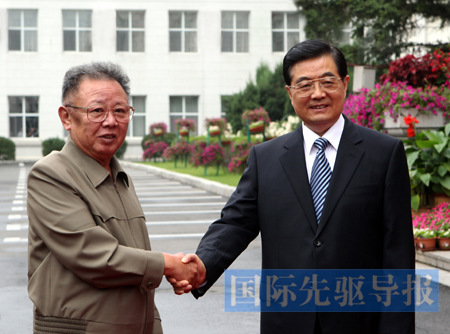 當(dāng)日,金正日與專程趕往長(zhǎng)春的胡錦濤舉行會(huì)談。盡管在被允許采訪的名單當(dāng)中,沒(méi)有一個(gè)西方媒體的名字。但26日的俄羅斯《報(bào)紙報(bào)》網(wǎng)站就早早“預(yù)報(bào)”了“金正日要向中國(guó)領(lǐng)導(dǎo)人介紹其接班人”的消息。