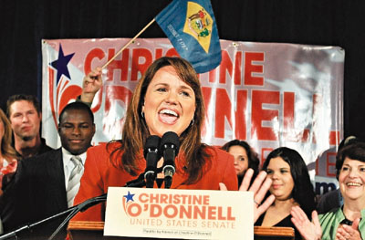 中新網(wǎng)9月16日電 據(jù)臺(tái)灣“聯(lián)合新聞網(wǎng)”報(bào)道,美國兩大黨14日在多個(gè)州舉行期中選舉初選,極端保守派系“茶黨”(Tea Party)初露鋒芒,攻城略地。沒有公職經(jīng)驗(yàn)、之前屢戰(zhàn)屢敗的該黨候選人克里斯汀.奧唐納爾,14日在特拉華州聯(lián)邦參議員初選擊敗共和黨支持的現(xiàn)任眾議員卡索,震驚美國政壇。