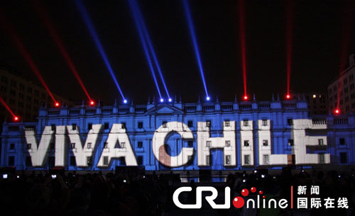 名為“智利,力量”的大型聲光電演出9月16日至21日在首都圣地亞哥總統(tǒng)府廣場舉行。作為智利獨立200周年慶;顒拥男蚰,演出吸引了大量觀眾。