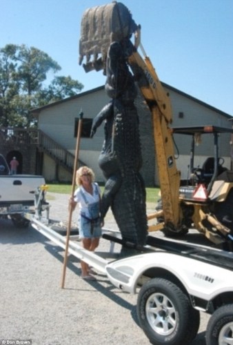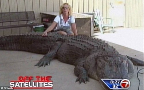 在南卡羅來(lái)納州摩爾特里湖中,48歲的瑪拉·克里斯蒂安與這條巨大無(wú)比的可怕生物爭(zhēng)斗了兩個(gè)小時(shí)。22毫米口徑的獵槍根本無(wú)法制服它,瑪拉就用鋒利的尖刀切斷了野獸的脊柱。最終,她終于可以在起吊機(jī)前細(xì)細(xì)打量這條令人難以置信的鱷魚(yú)。