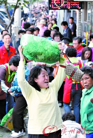 李明博似乎也卷入“泡菜危機”。韓國《中央日報》報道,“第一夫人”金潤玉平時喜歡去市場買菜,最近去市場發(fā)現(xiàn)大白菜居然1萬韓元一棵,便和李明博談及此事。李明博隨后囑咐青瓦臺廚房長,用洋白菜取代大白菜來制作泡菜。
