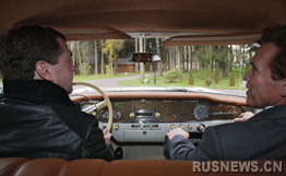 據(jù)報道,會談一開始,施瓦辛格回憶了梅德韋杰夫今年夏天訪問加利福尼亞時的情景。他對梅德韋杰夫說:“我當(dāng)時對您說,‘我會回(俄羅斯)去的’。這不回來了嗎?”施瓦辛格補(bǔ)充說,他帶來了一個大型美國企業(yè)家代表團(tuán)。