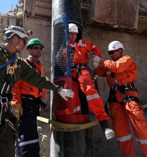 這些礦工們已開始服用100毫克的阿司匹林,以防升井的過程中發(fā)生血管阻塞。他們?cè)谧詈髷?shù)小時(shí),將穿上緊縮襪與特制束身衣,這些衣服裝有電極,以跟蹤他們的心跳、呼吸、體溫和耗氧量。同時(shí),他們僅能食用美國太空總署提供的高熱量流質(zhì)食物,以防在升井的過程中嘔吐。
