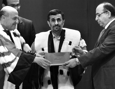 14日上午,內(nèi)賈德在位于貝魯特的黎巴嫩大學(xué)受到了師生們的熱烈歡迎,并被授予政治學(xué)榮譽(yù)博士學(xué)位。黎教育部長(zhǎng)和黎巴嫩大學(xué)校長(zhǎng)為他披上博士服并頒發(fā)了學(xué)位證書。獲得博士學(xué)位的內(nèi)賈德激動(dòng)不已,當(dāng)場(chǎng)向?qū)W生們發(fā)表講話。他說:“我們相信真正的科學(xué)會(huì)為人類、和平、愛和友誼服務(wù)。”