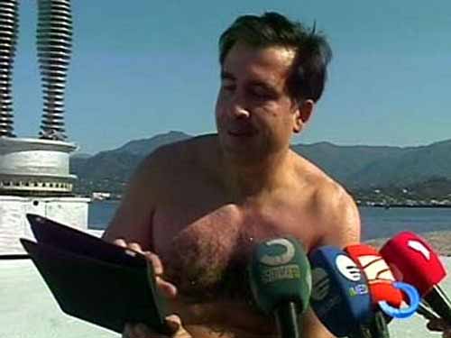 俄媒體報道認為,薩卡什維利“赤膊”接受記者采訪“明顯是效仿普京進行的炒作”。此前,普京還是俄總統(tǒng)時在西伯利亞赤膊打魚的照片曾引起關注,隨后奧巴馬同樣的“赤膊照”也震驚了世界。