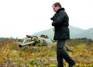 11月1日,俄總統(tǒng)梅德韋杰夫登上與日本存在爭議的南千島群島(日本稱北方四島)南端的國后島視察。這是俄羅斯和蘇聯歷史上首位前往南千島群島視察的國家元首。日本首相菅直人立即表示俄總統(tǒng)此行“非常令人遺憾”。俄羅斯外交部回應稱,梅德韋杰夫“獨立確定在本國境內出行的路線”。