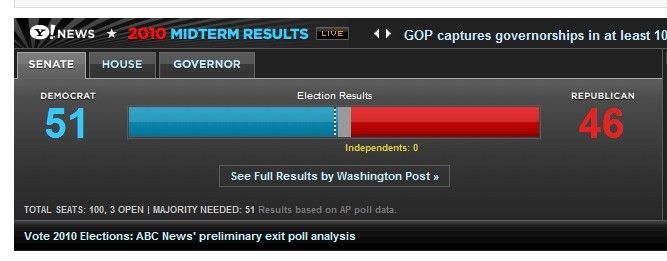據(jù)報道,《華盛頓郵報》最新出口民調(diào)結(jié)果顯示,在美國2010年中期選舉當中,總統(tǒng)奧巴馬所在的民主黨在參議院已開出的97個席位中獲得了51個席位,超過參議院100個議席中的半數(shù),獲得了參議院掌控權(quán)。