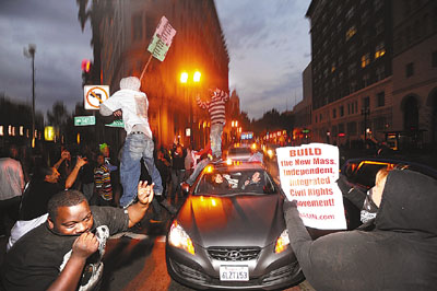 中新網(wǎng)11月7日電 據(jù)香港《文匯報》報道,美國加州奧克蘭一名白人警員去年元旦射殺一名手無寸鐵的黑人男子,隨后引發(fā)種族騷亂。涉案警員前日被判囚2年,死者家屬不滿刑罰過輕,約500人到市府外示威,高呼“沒公義,沒和平”,并與警察沖突,期間有人打破窗戶和跳上汽車,有警員更一度被搶去佩槍。警方加強(qiáng)戒備,防止再次爆發(fā)騷亂,沖突中最少有152人被捕。