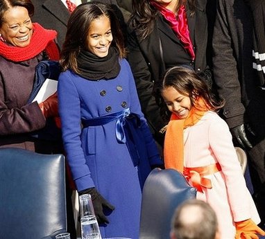 中新網(wǎng)1月22日電 美國(guó)總統(tǒng)奧巴馬的長(zhǎng)女馬莉婭(10歲)和次女薩莎(7歲)20日在奧巴馬就職儀式上的著裝獲得一致好評(píng),被稱“很可愛(ài)”,人氣不亞于總統(tǒng)夫人米歇爾的禮服。據(jù)日本共同社報(bào)道,就職儀式后有關(guān)服裝廠商接到蜂擁而至的問(wèn)詢,以致于網(wǎng)頁(yè)爆滿陷入癱瘓。