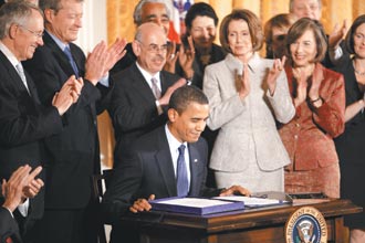 中新網2月6日電 據(jù)臺灣《聯(lián)合報》報道,美國眾院4日表決擴大“州兒童醫(yī)保計劃”(SCHIP)法案,結果以290票對135票的壓倒性比數(shù)通過,奧巴馬總統(tǒng)隨即在白宮簽署使其生效,并稱之為邁向實現(xiàn)他“全民醫(yī)保”競選承諾的第一步。