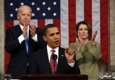 中新網2月25日電 北京時間今天早上(美國時間24日晚),美國總統(tǒng)奧巴馬在國會聯(lián)席會議中對民主、共和兩黨代表,以及電視前的美國民眾發(fā)表演說,闡述未來的政策,同時鼓舞國民信心。這次演講普遍被看作“準國情咨文”,無論對美國未來走向和奧巴馬本人而言,都非常重要,F(xiàn)將演講內容摘錄如下(段落有調整):