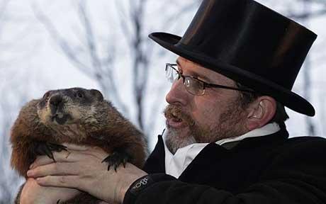 今年的2月2日,13000名觀眾聚在在賓夕法尼亞州的小鎮(zhèn)旁蘇托尼(Punxsutawney)觀察一只名叫“菲爾”的土拔鼠的行為!胺茽枴笔枪俜街付ǖ耐涟问髿庀箢A(yù)測員,2月2日早晨,“菲爾”被工作人員弄出洞,面對眾人和媒體,尋找自己的影子,然后將預(yù)測結(jié)果告訴鎮(zhèn)上帶高帽的老人比爾·庫柏,再由他向大家宣布預(yù)測結(jié)果。據(jù)說,庫柏是世界上唯一一個懂土拔鼠語言的人。這一天天氣晴好,土拔鼠“菲爾”看到了自己的影子,那么預(yù)示著美國的冬天還要持續(xù)6個星期。根據(jù)旁蘇托尼土拔鼠俱樂部的記載,自1887年起,菲爾看到過自己的影子達(dá)97次,沒看到的有15次,有9年沒有記錄。這個小鎮(zhèn)今年吸引了來自日本、冰島和埃及的游客,小鎮(zhèn)聲稱菲爾的預(yù)測從來就沒有失誤過。