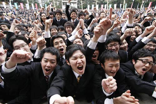 當(dāng)天,約3000名畢業(yè)生聚集在這里,一同參加了這場別開生面的求職誓師大會,通過這一方式增強信心,鼓舞士氣,希望能在當(dāng)前不景氣的經(jīng)濟困境中找到立足之地。