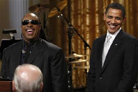 中新網(wǎng)2月26日電 據(jù)路透社報(bào)道,美國總統(tǒng)奧巴馬夫婦日前在白宮為黑人歌手汪德(Stevie Wonder)舉辦音樂會并頒獎,稱是汪德的音樂撮合了他們夫婦。