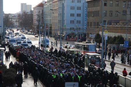 大約400名觀看足球聯(lián)賽巴尼克隊(duì)與布拉格斯拉維亞隊(duì)比賽的巴尼克隊(duì)球迷當(dāng)天傍晚乘坐火車(chē)從386公里以外的俄斯特拉發(fā)市到達(dá)首都布拉格后,早已恭候在火車(chē)站外的大隊(duì)防暴警察押送他們步行3公里直接去斯拉維亞體育場(chǎng)。比賽一結(jié)束又立即重新把他們押送回火車(chē)上,讓他們馬上回家,禁止他們?nèi)ナ锥际兄行聂[事。當(dāng)晚比賽巴尼克隊(duì)以0:1負(fù)于斯拉維亞隊(duì),其間沒(méi)有發(fā)生大規(guī)模球迷騷亂,巴尼克隊(duì)球迷深夜2時(shí)回到家鄉(xiāng)。