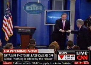 據(jù)美國媒體5月13日報道,白宮13日中午舉行的新聞發(fā)布會進(jìn)行的很激烈,美國有線電視新聞網(wǎng)記者埃德-亨利、美國廣播公司記者杰克-塔皮爾和其他記者紛紛對白宮發(fā)言人吉布斯提出尖銳問題,質(zhì)疑奧巴馬總統(tǒng)13日作出的將設(shè)法阻止公布美軍虐囚照片的決定。不過,發(fā)布會的緊張氣氛由于手機(jī)鈴聲多次響起而得以在短時間內(nèi)得到緩解。