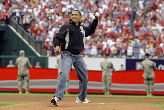 中新網(wǎng)7月15日電 據(jù)美聯(lián)社等媒體報(bào)道,美國(guó)總統(tǒng)奧巴馬14日在圣路易斯為美國(guó)職業(yè)棒球全明星賽開(kāi)球。事后接受采訪(fǎng)時(shí)他透露為了投出好球,他在白宮的玫瑰花園練習(xí)多次。