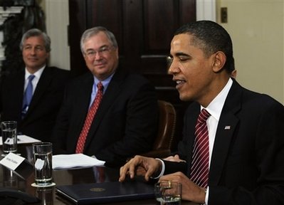 奧巴馬曾經(jīng)指責(zé)這些領(lǐng)取高額花紅的“肥貓銀行家”,因此他借這次會面促使這些銀行擴(kuò)大向小企業(yè)的貸款,以及停止干擾立法整頓金融管理系統(tǒng)的工作。
